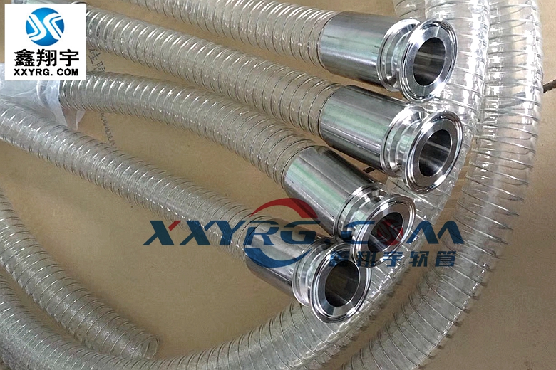 3、 內(nèi)帶螺旋鋼絲的(de)食品級透明矽膠鋼絲管,型號為XY-0112透明矽膠鋼絲軟管,食品級(jí)矽膠鋼絲軟管廣泛的應用於(yú)運輸或輸送高低溫食品、化妝品、化(huà)工和製藥行業和生物工程用的液體或半液體(tǐ)流體,。(如抽吸食品類乳製品;食品機械設備用(yòng)連接管;酒類用連接導管;油類設備抽吸用的連(lián)接(jiē)管,醫藥設備連接管路、導管等)。矽膠鋼絲軟管(guǎn)采用單(dān)層304不鏽鋼絲,間距為5MM矽膠鋼絲軟管具有極好彎曲性,內壁光滑(huá)清潔,易清洗不粘水,用(yòng)清(qīng)洗物清洗(xǐ)後不附著任何殘留物(wù),可(kě)采用高溫高壓蒸汽消毒和滅菌(jun1)。矽膠鋼絲軟管無嗅、無味,完全無毒,可取代目前市場上的PU管,且矽膠更加(jiā)環保,耐用。產(chǎn)品(pǐn)經過高溫180ºC*4小時高溫硫化後,不分產(chǎn)生任何分解物,承正負壓能力強,具體參考數據(jù)表。這些管通常是(shì)高透明的(de),可以看到流體通過時動(dòng)向。製藥級透明矽(guī)膠(jiāo)鋼絲軟管通過美國FDA 21 CFR 177.2600(食品和藥(yào)物管理局)食品級認(rèn)證。
