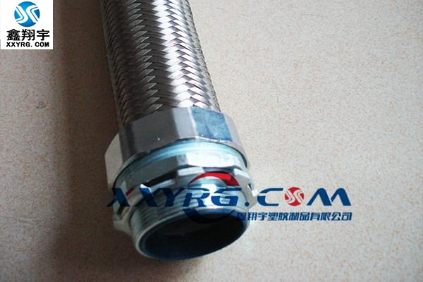 外層不鏽鋼絲編織(鍍鉻黃銅編織),防爆、抗磨(mó)損及(jí)抗電磁(cí)幹擾屏蔽作用,增強了拉(lā)力強度和防爆功能(néng),耐腐蝕,廣泛使用於冶金化工等行業.不(bú)鏽鋼絲選用優質SUS304/SUS301材質,其中SUS304[0Cr18Ni9Ti]選用0.18毫米(mǐ)直徑細絲,絲質光滑柔軟(ruǎn),色澤(zé)潔白如銀,鋼絲永不生(shēng)鏽,接口(kǒu)永不炸頭XY-0609不(bú)鏽鋼防爆軟管適用範圍:工業機械設備電線電纜保護;特別適用於危險潮濕環境;